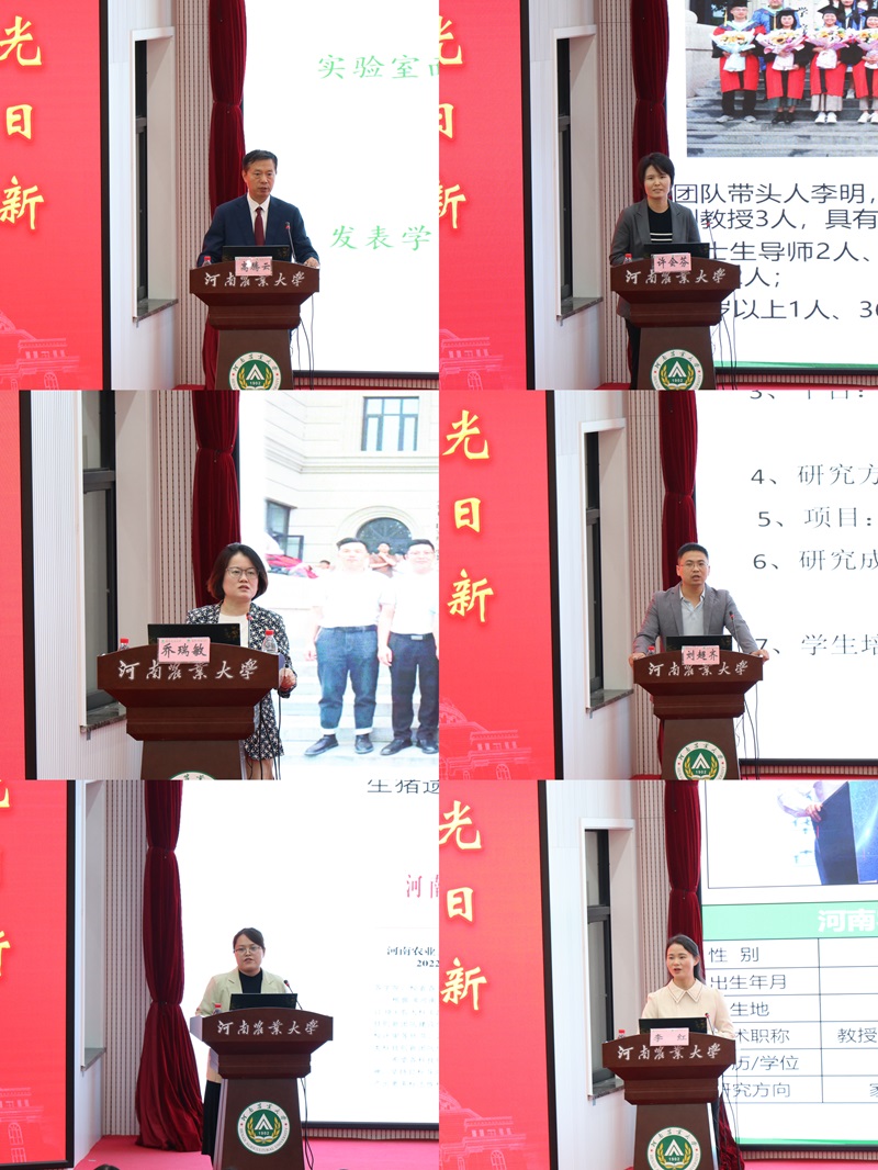 随后,学院生猪遗传改良及种质资源创新团队(乔瑞敏教授)、地方鸡保护利用创新团队(李红副教授)、反刍动物生产科技创新团队(高腾云教授)、经济与水产动物特色性状解析与高效养殖创新团队(许会芬副教授)、动物营养与饲料生物技术科技创新团队(刘超齐副教授)、优质饲草与健康养殖科技创新团队(崔亚垒副教授)等六大科研团队代表依次汇报。各团队代表围绕团队建设情况展开系统汇报,内容涵盖四大核心维度:在师资力量方面,重点阐述由教授、副教授领衔的学术梯队结构,明确各层级人员职责与研究方向;在科研项目方面,简要介绍当前承担的国家级、省级重点课题,清晰说明课题核心研究目标与技术路线;在成果产出方面,详细列举近年发表的SCI论文、核心期刊论文数量及选题方向,同时展示获批国家专利的类型与应用价值;在学生培养方面,突出分享团队在研究生学术指导、实践能力培养及就业资源对接等领域的特色做法与成效,展现产学研融合育人模式。