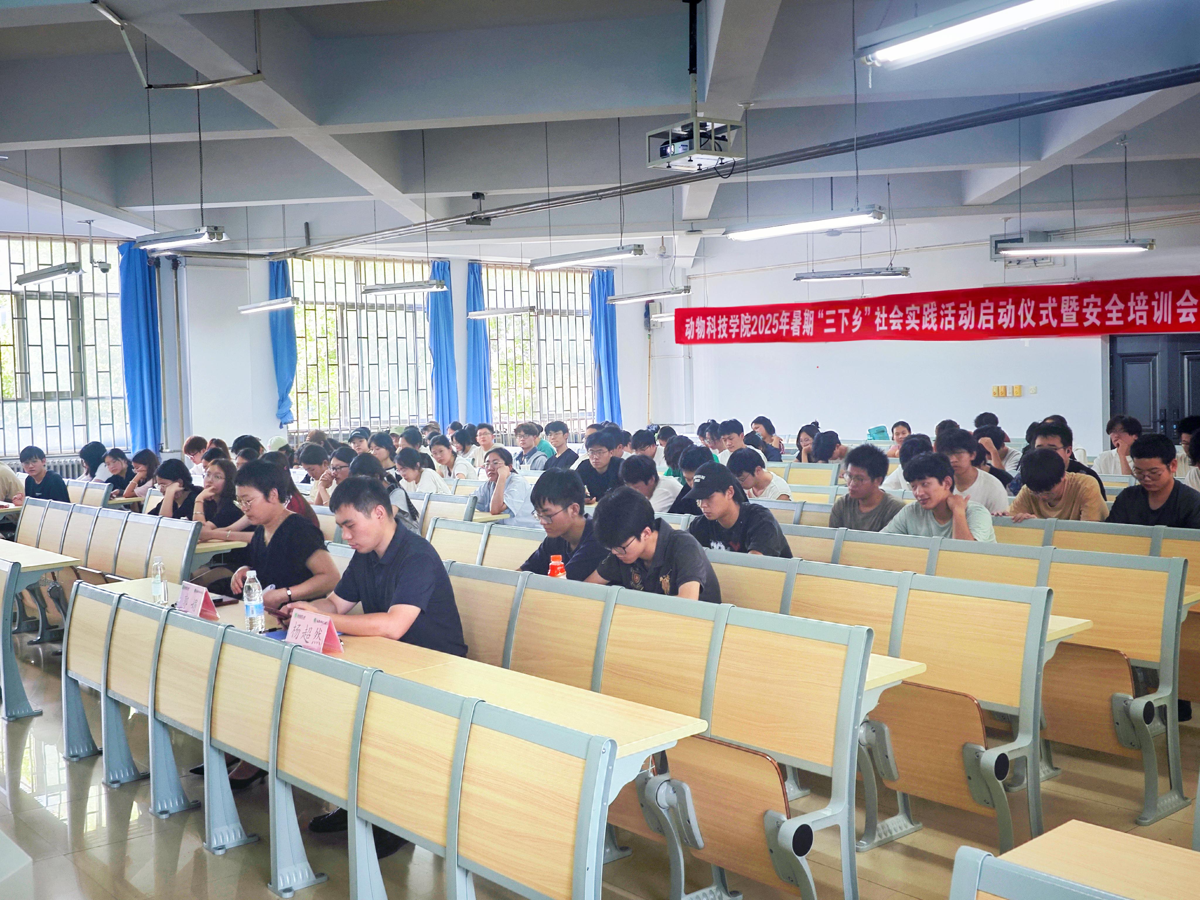 于桃李园生活区桃西楼204教室举行2025年暑期“三下乡”社会实践启动仪式暨安全培训会,院党委副书记郭娟、辅导员杨超然,线上线下共四十支团队成员参会,会议由学生会执行主席刘琳主持。