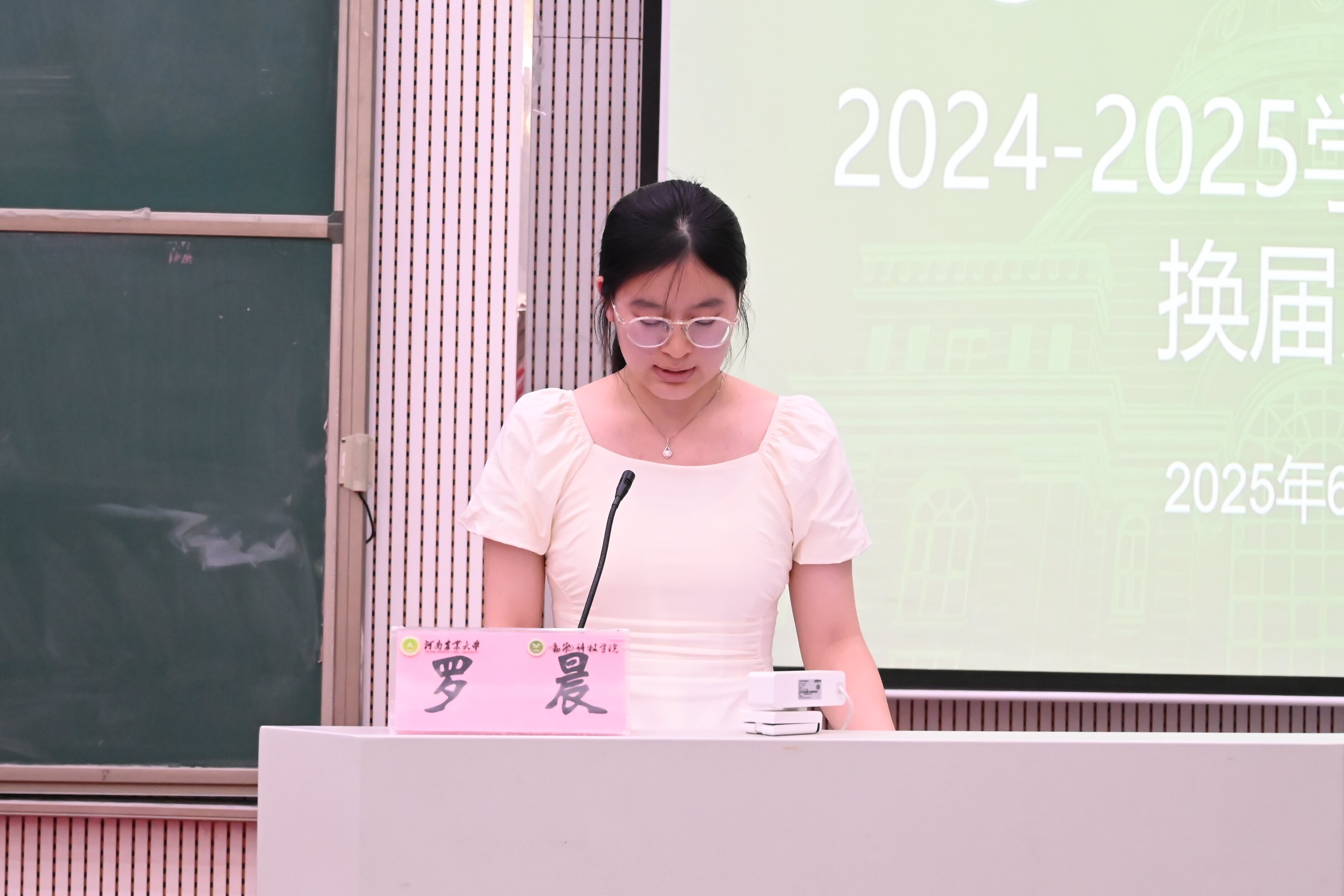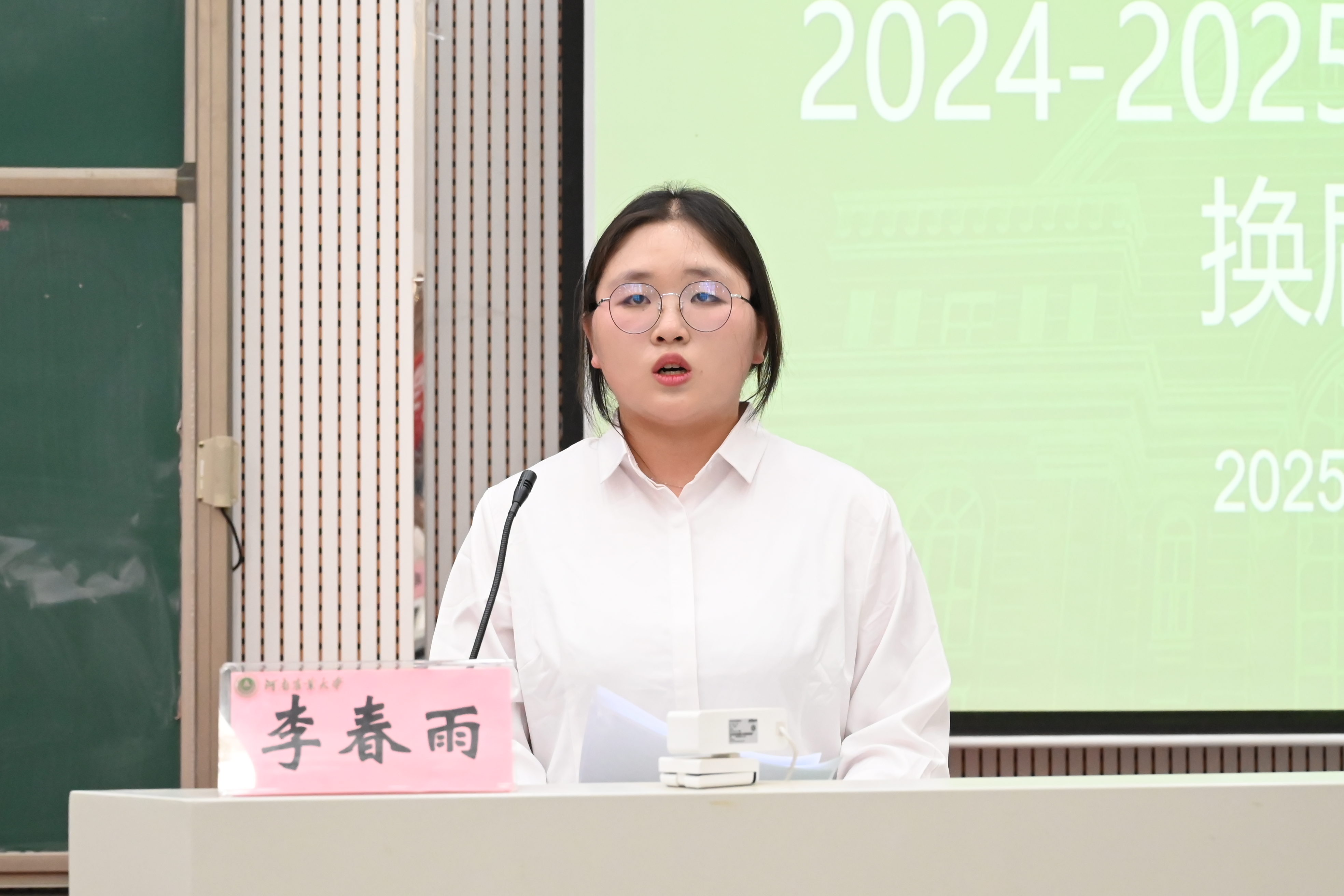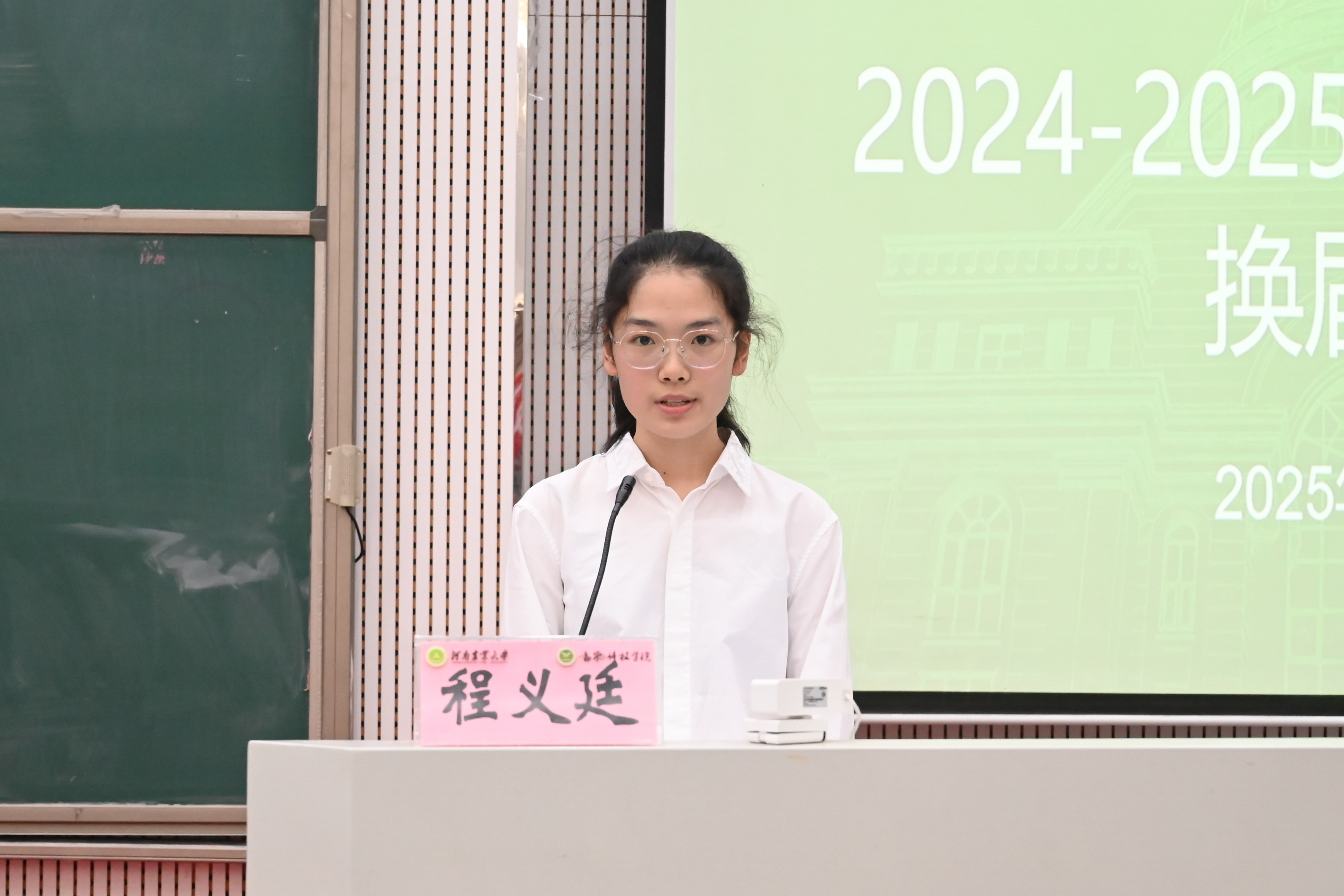 赵姝灿作总结讲话,向过去默默奉献的学生干部致以衷心的感谢,并寄语新一届各组织成员,一是要不忘初心,坚定信念,牢记宗旨;二是要锤炼本领,服务为本,锐意创新;三是要严于律已,行为世范,珍惜韶华。她表示,期待新一届学生干部“传承接力棒,跑出加速度”,精诚团结,锐意进取,为学院发展贡献蓬勃的青春力量!