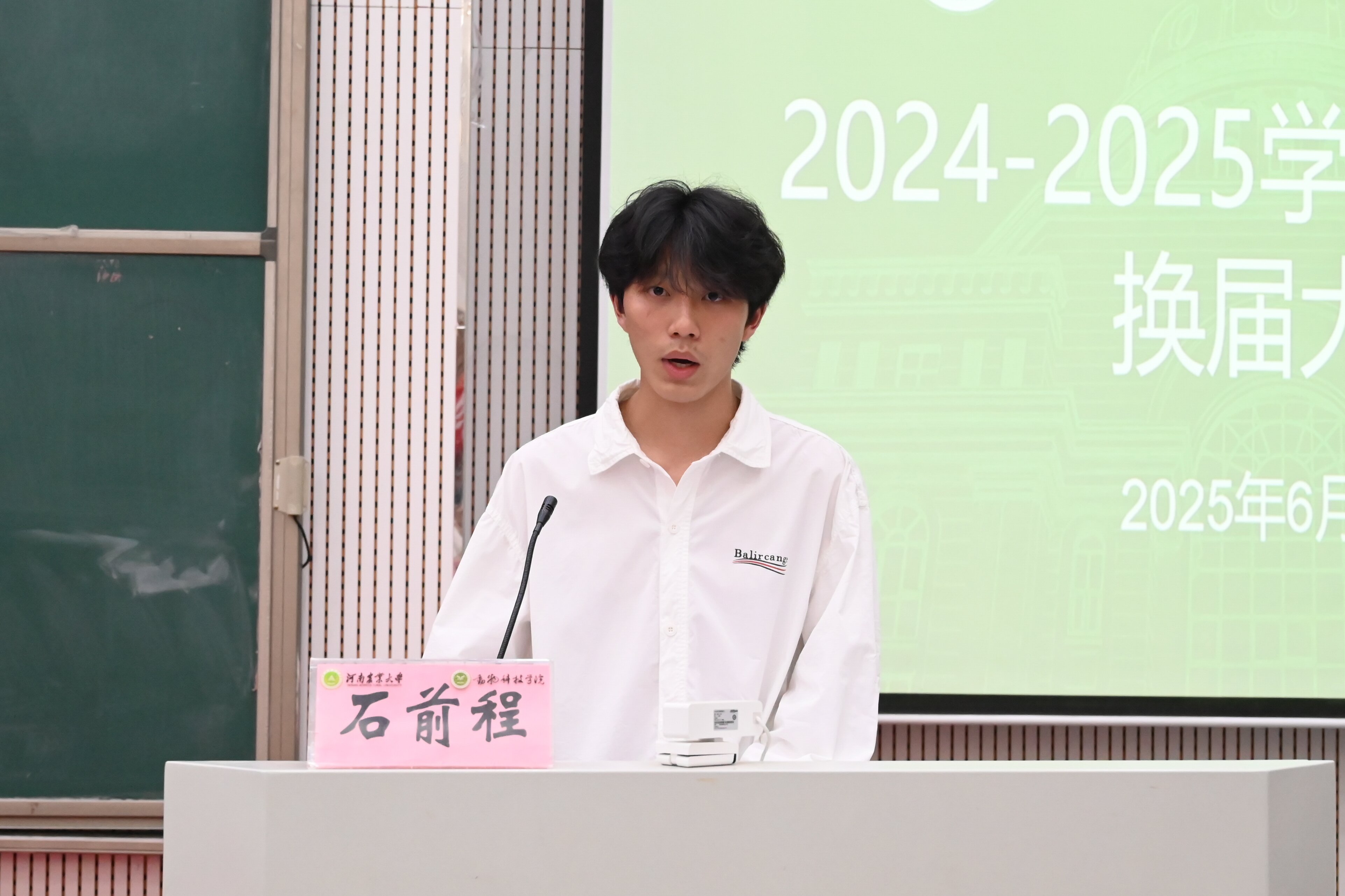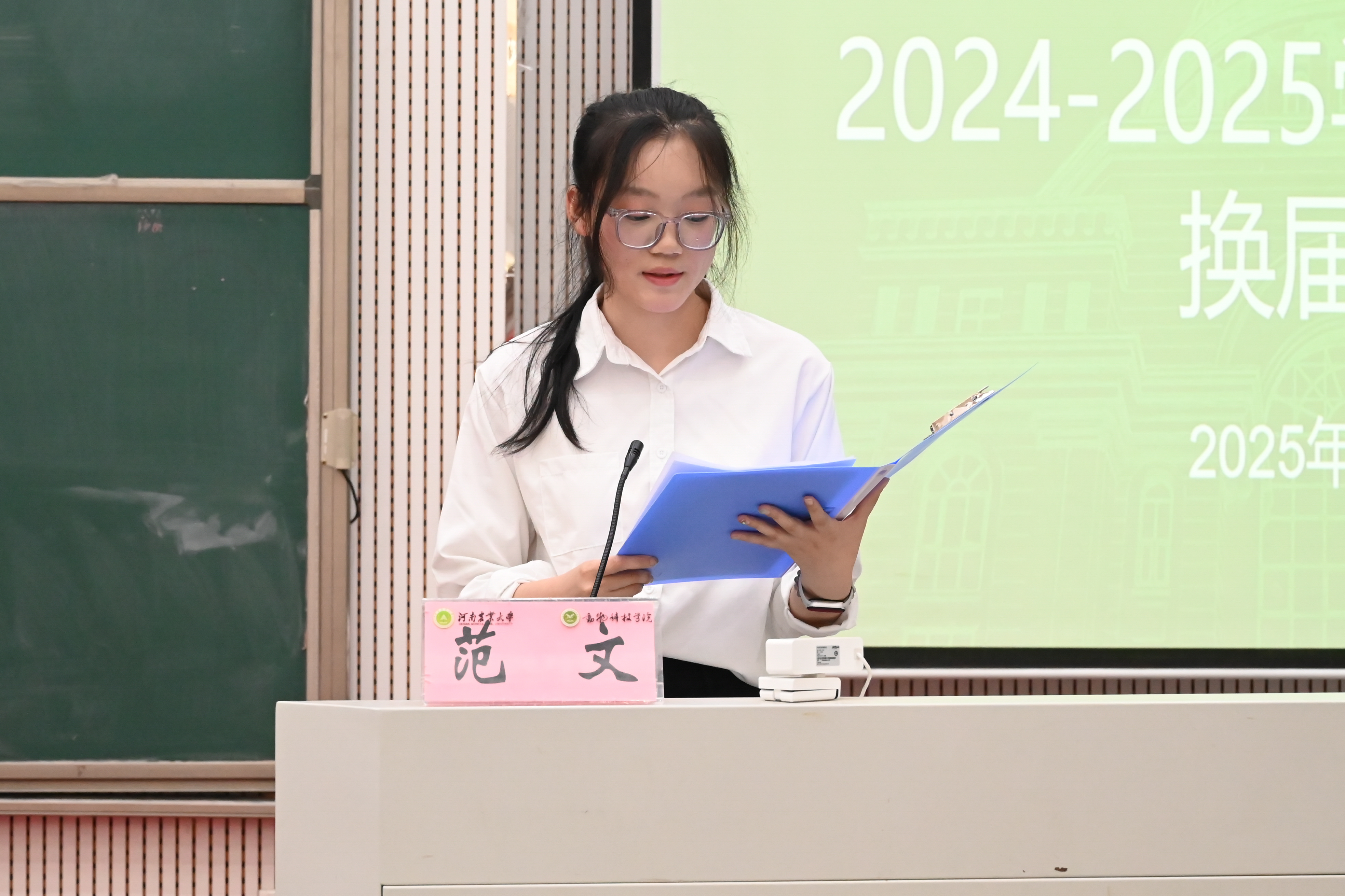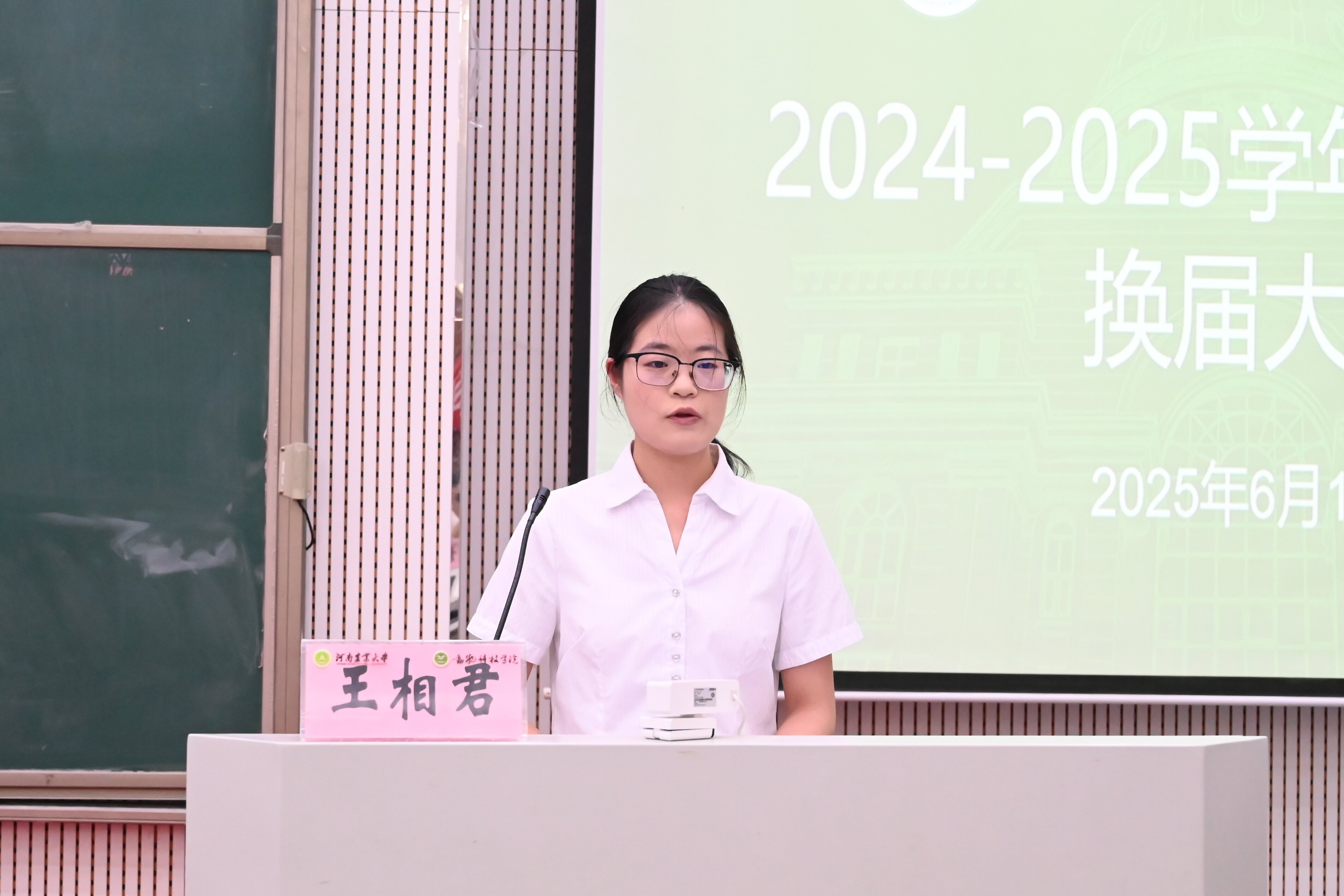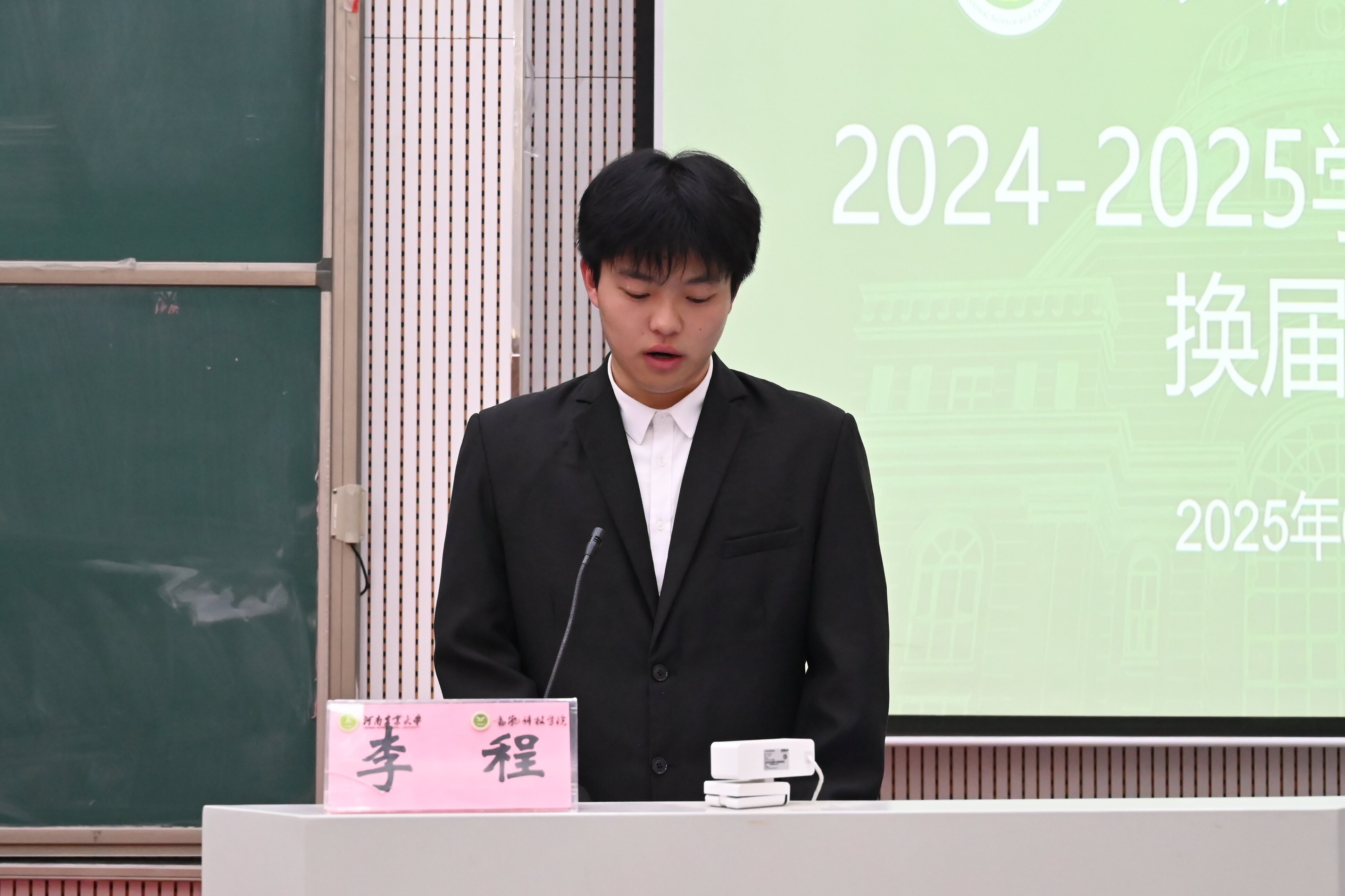 于龙子湖校区繁塔楼大教室七召开2025届学生干部职能部门换届公选大会,院组织员兼团委书记韩笑、院团委老师赵姝灿、杨超然及兼职辅导员韩易桐,院各学生组织、班干部代表参加会议。