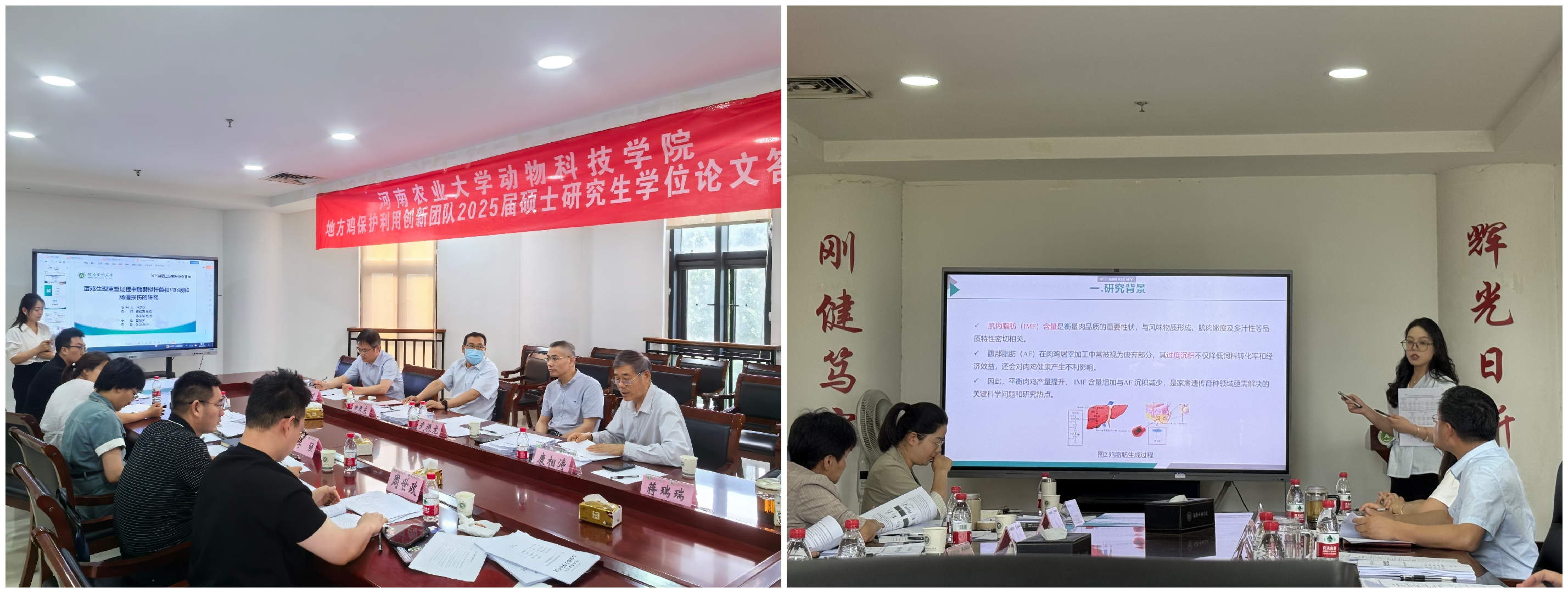 研究生论文答辩规范流程,始终秉持公开透明、严谨公正的学术准则,有序推进答辩学生汇报PPT、专家提问、学生回答等环节开展答辩工作。家禽团队21位2025届硕士研究生分别从选题背景、研究方法、研究内容、研究结果、创新点及展望等方面向答辩专家汇报了硕士期间的科研工作。答辩过程中,专家们就论文选题的科学性、研究成果的创新性、专业知识的运用能力、学术写作规范以及答辩表现等维度,展开了深入细致的质询。通过专业提问全面考察毕业生对学科知识的掌握深度与综合应用能力,并针对论文现存问题提出建设性意见,为提升论文质量提供了宝贵指导。答辩学生认真记录专家建议,逐一细致作答,并承诺将根据意见对论文进行全面优化完善。答辩现场气氛严肃而融洽、紧张而有序。