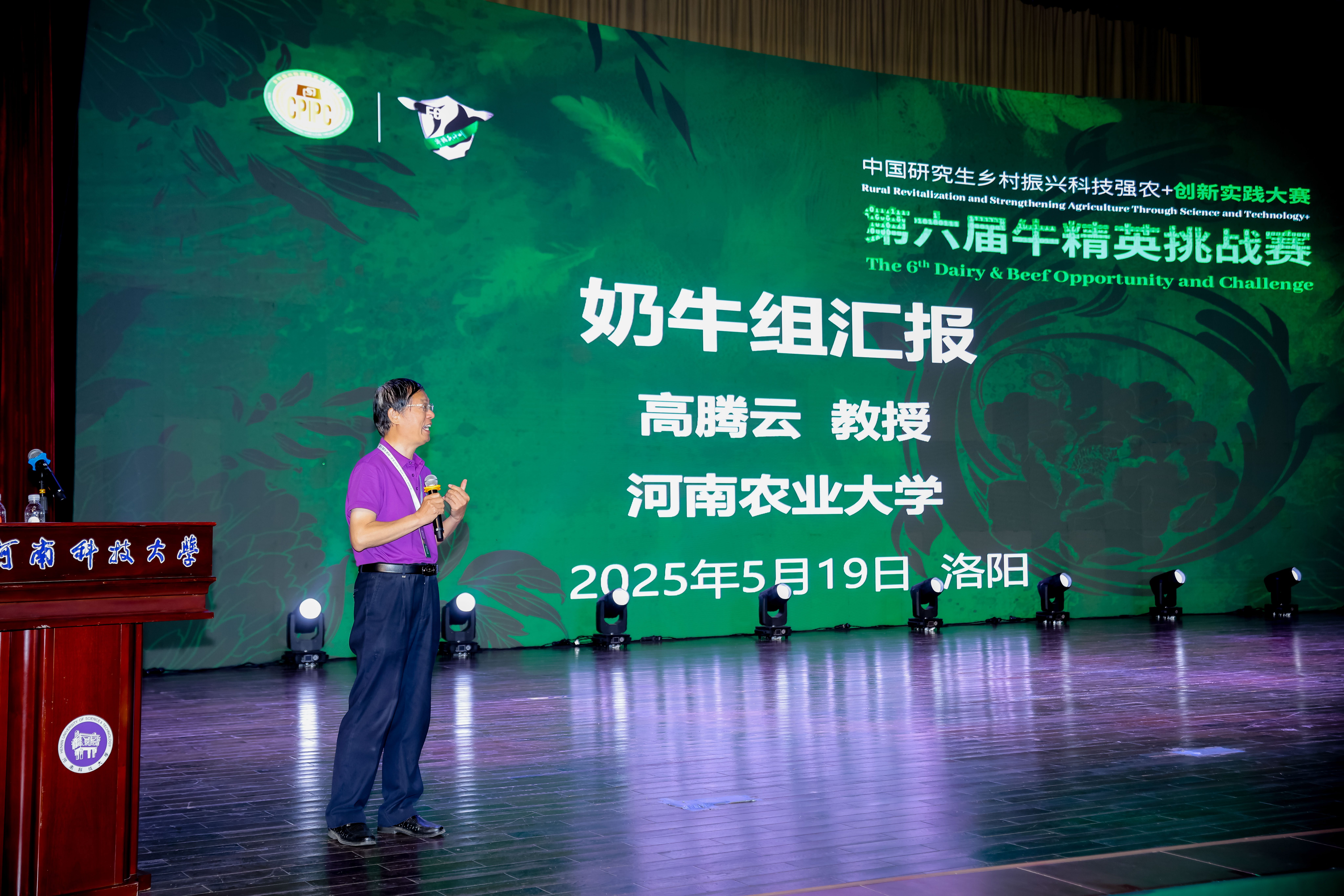 教师团队充分发挥专业优势,深度参与赛事各项工作,为大赛的成功举办提供了重要支撑。高腾云教授担任奶牛组答辩现场组长,并代表组委会在闭幕式上作赛事总结报告;张立阳副教授、刘凯珍博士分别担任奶牛组和肉牛组牧场评估评委,以严谨的专业态度完成评审工作。最终,我校凭借出色的组织工作和突出的专业贡献,荣获“优秀组织单位”称号,高腾云教授更获颁大赛最高荣誉“杰出贡献奖”,充分彰显了吃瓜网站