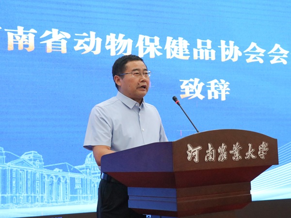 郑宝振致辞,指出河南作为农业大省与畜牧业强省,现有规模化动保企业200余家,涵盖兽药、疫苗等领域,年产值超百亿元。当前行业对人才需求迫切,望政校企三方探索高效培养模式,依托农大科研与人才优势,整合资源推动行业强劲发展。