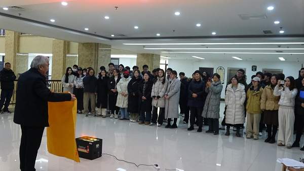 于龙子湖校区第一实验楼三楼大厅举办消防安全培训活动,本次活动特别邀请了院长李明作为主讲嘉宾,副院长酒梅菊、部分老师以及全体研一新生参加了会议。