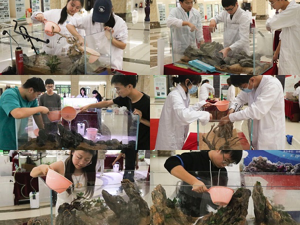 水产养殖学和动物科学专业以及园艺学院园艺专业共14支队伍参加此次比赛,创作出《枯荣》、《桃花源》、《光》、《远山含黛》等一系列精美绝伦的水族箱造景作品,在有限的空间表现出主题思想与最佳美感效果,充分展现出学生的创作思维与艺术灵感。