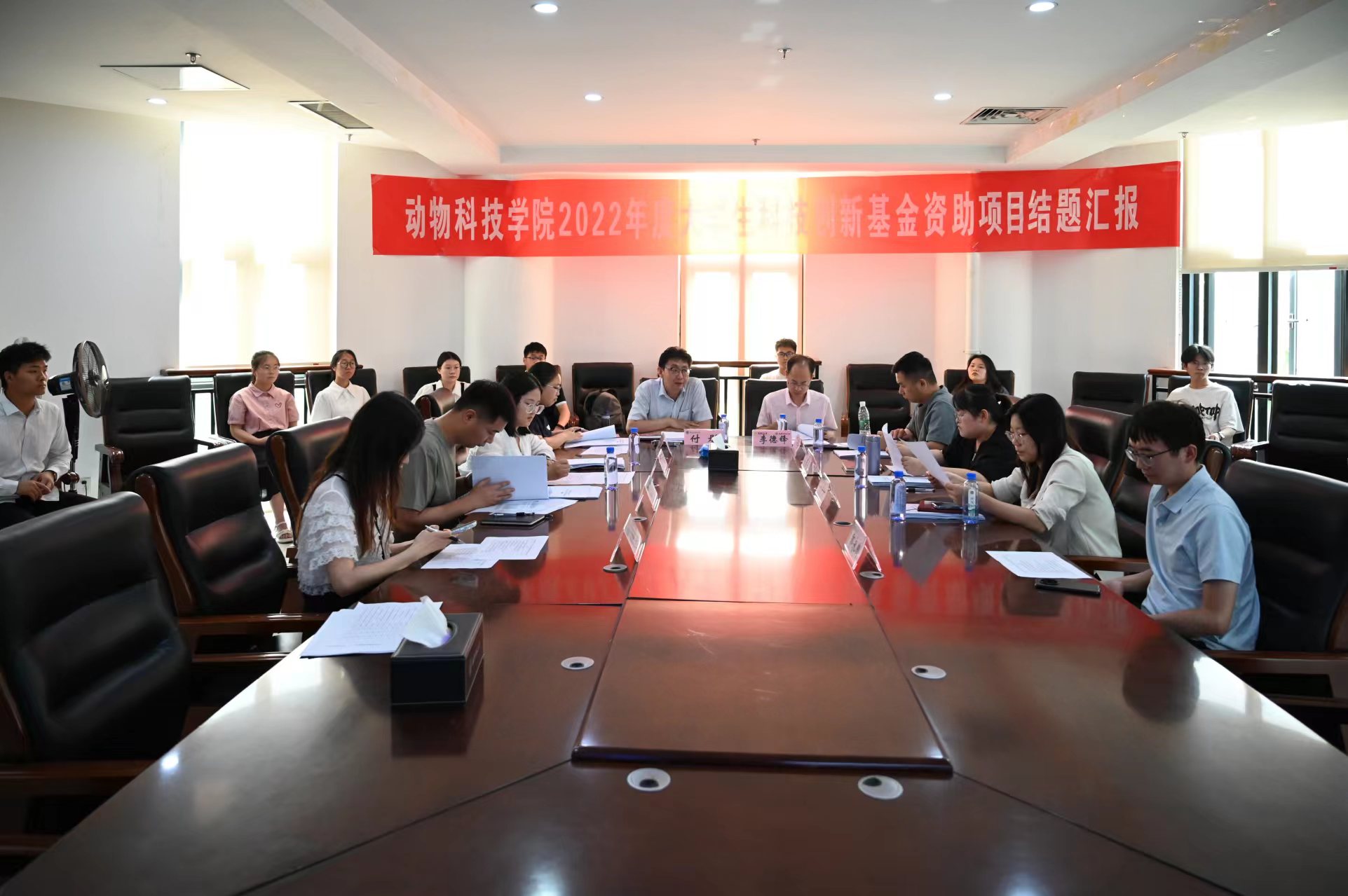 于龙子湖校区第一实验楼北330会议室召开2022年度大学生科技创新基金资助项目结题汇报会,农大牧原联合产业研究院执行院长兼学院副院长付彤、动物营养与饲料科学系教师李德锋、崔亚垒、孙浩、金三俊和郭永鹏、动物生产与智慧牧业系教师王克君、水产与经济动物养殖系教师刘变枝和于光晴以及辅导员赵姝灿担任评委,各项目组汇报人参加会议,会议由赵姝灿主持。