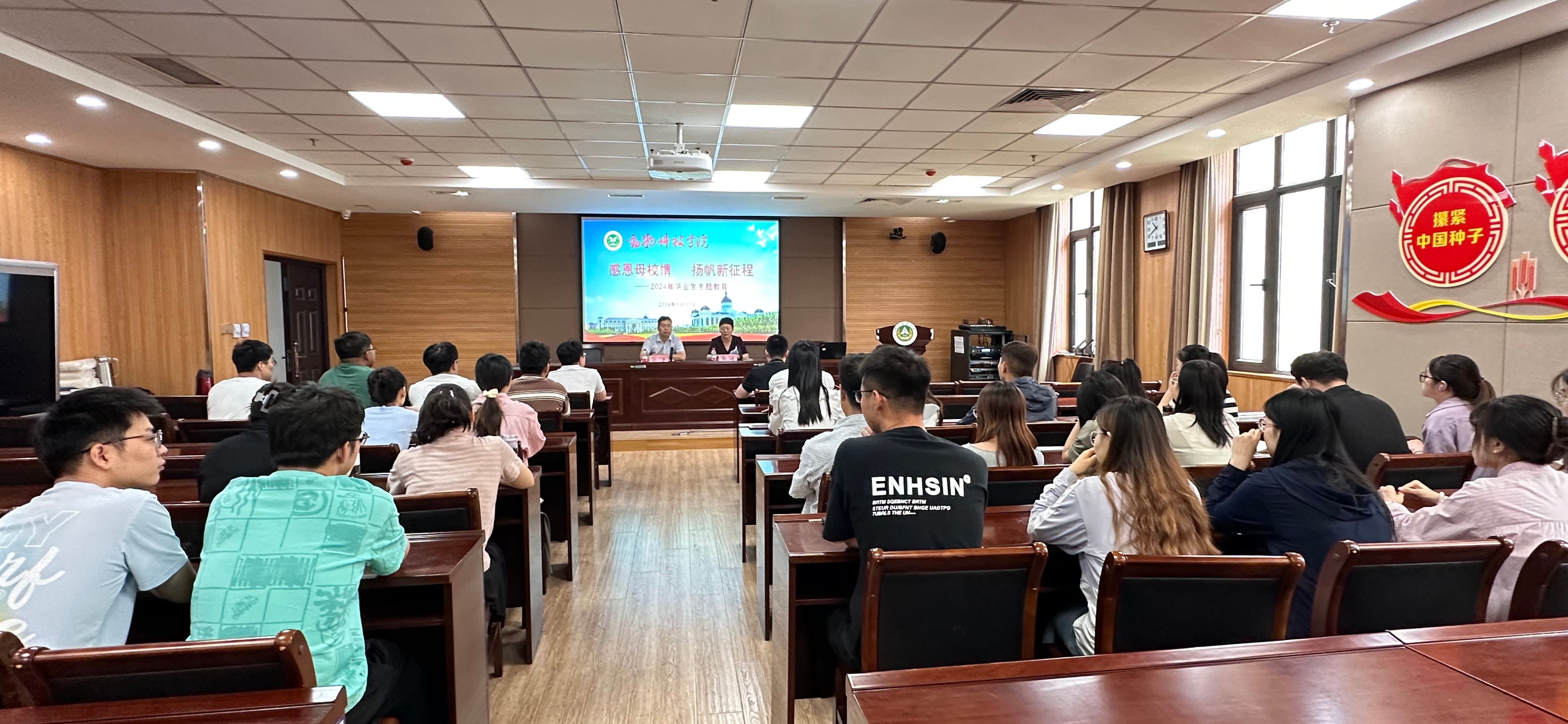 举办了“感恩母校情,扬帆新征程”2024届毕业生主题教育活动。党委副书记郭娟、副院长孙宇、辅导员郭明以及全体2024届研究生毕业生参加会议。会议由郭娟主持。