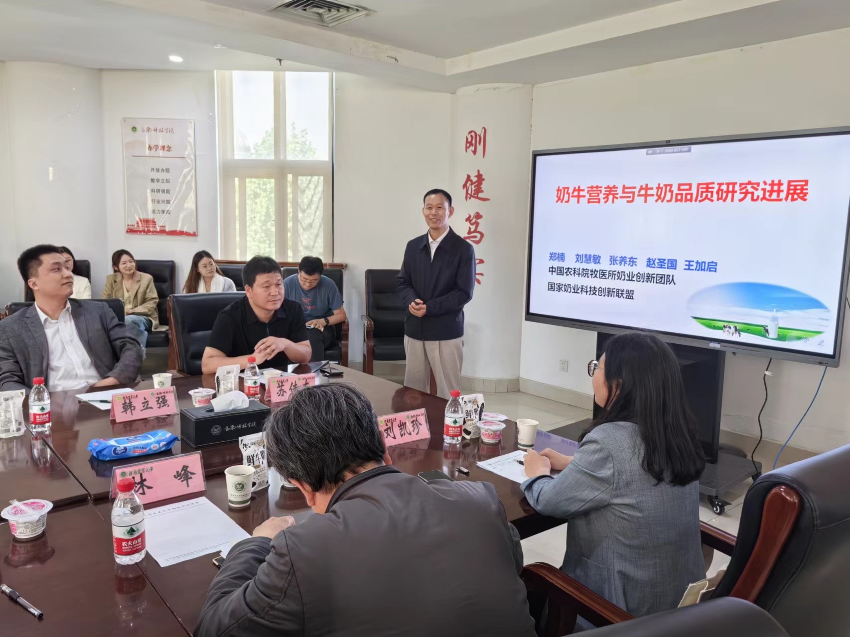 在第一实验楼330会议室举办了第93期“日新论坛”,本次论坛邀请到了农业农村部食物与营养发展研究所所长、国家现代奶牛产业技术体系科学家王加启研究员,学术报告题目为《奶牛营养与牛奶品质研究进展》。报告会由李明院长主持,副院长孙宇、副院长韩立强、高腾云教授、以及学科相关老师和研究生参加了报告会。