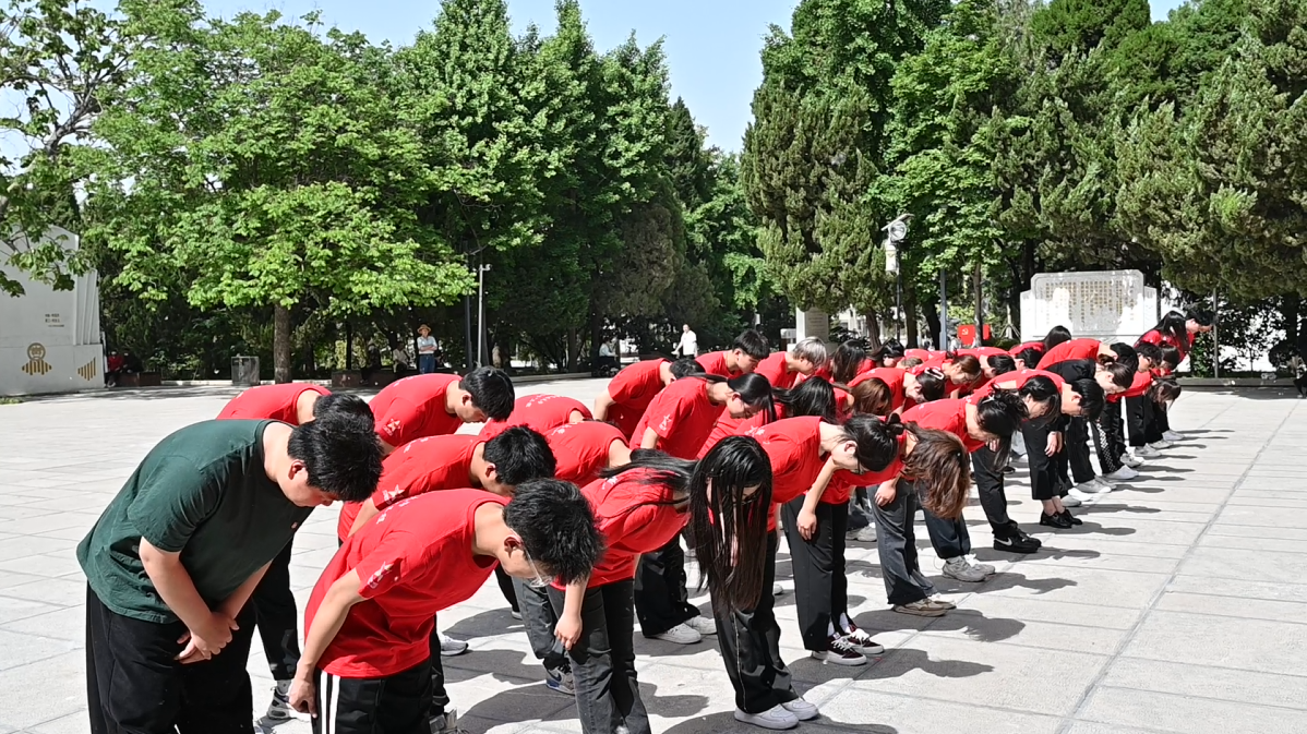 全体人员拜谒焦陵,敬献花篮,瞻仰烈士陵墓,鞠躬致敬