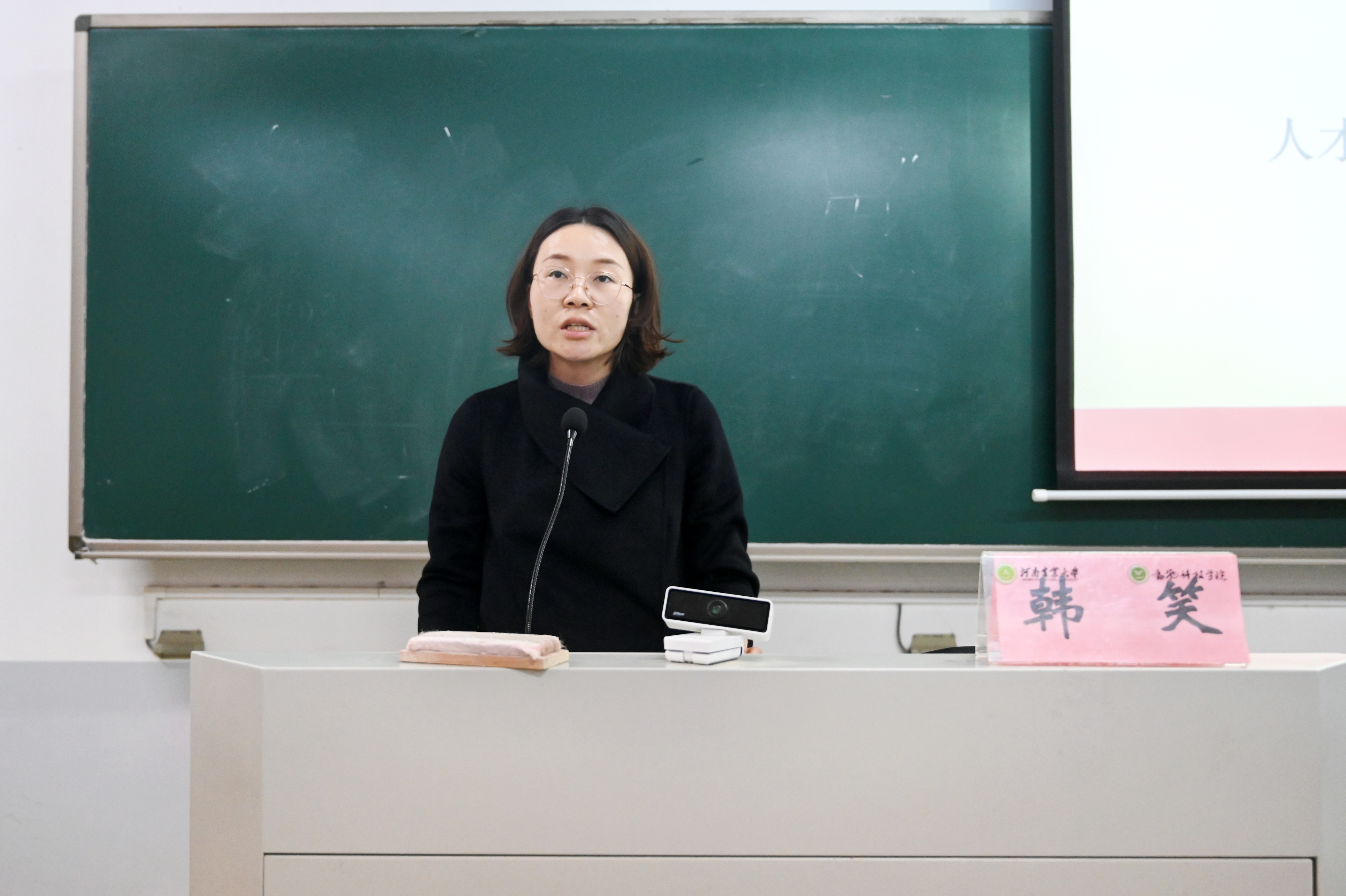 于龙子湖校区繁塔楼E113教室举行第27期笃实讲堂。特邀艾格多集团人资总监孙爱平为主讲嘉宾,院组织员兼团委书记韩笑主持,吃瓜网站