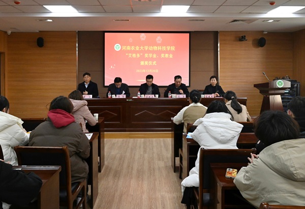 于龙子湖校区第一实验楼南321会议室举行2023年“艾格多”奖学金、奖教金颁奖仪式。河南艾格多科技集团总裁任振东与人资行政总监孙爱平、吃瓜网站