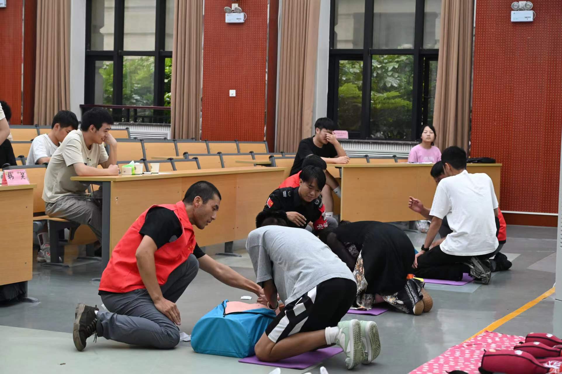 本网讯(通讯员 孔曼瑜)为深入普及应急救护知识,引导学生强化安全防范意识,提高应急避险能力,9月19日下午,学院于龙子湖校区繁塔楼大教室5开展了“救护技能人人会,防灾减灾从我行”安全教育专题讲座。特邀郑州市人民防空办公室特种救援中心董夏主任、郑州人防志愿队伍汉华减灾防灾促进中心陈文龙老师作为主讲嘉宾,院组织员兼团委书记韩笑和本科生学生代表参加讲座。活动由韩笑主持。