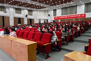 在龙子湖校区大教室一举行党的二十大精神宣讲暨2023年春季开学第一课,院党委书记贾磊做题为《学习二十大 奋进新征程》的专题辅导报告。院党委副书记郭娟、辅导员赵姝灿、兼职辅导员杨盼盼、学院全体党员和入党积极分子参加了报告会。