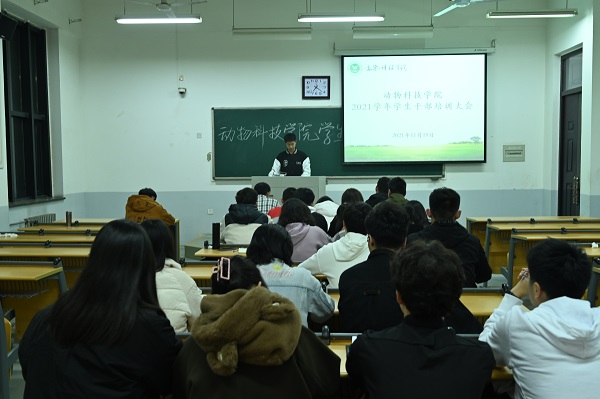 在教学楼D209召开新学期学生干部培训大会,辅导员黄璞、兼职辅导员邵冰豪、19级和20级学生会干部参加会议,大会由学生会主席刘城城主持。