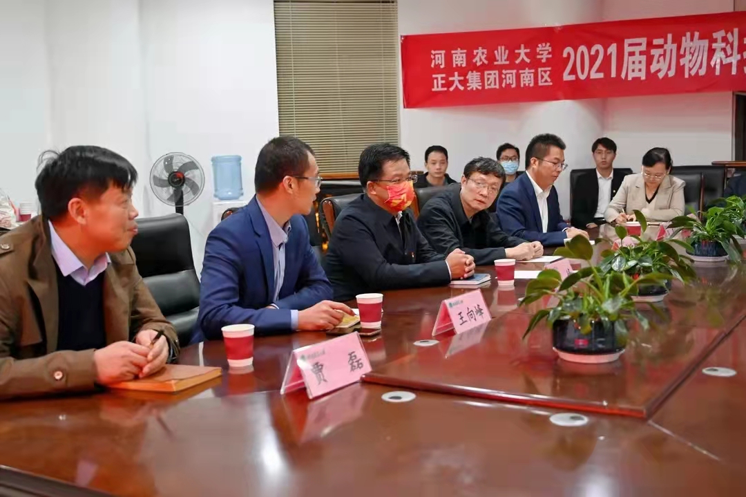 “正大班”(动物科学专业)在龙子湖校区举行宣讲、面试选拔及签约活动。校党委学工部部长、学生处处长徐峰,教务处副处长茹广欣,平顶山正大有限公司总经理张亚,开封正大有限公司总经理王向峰,正大集团河南区饲料养殖事业人事主管文俊雅,洛阳正大食品有限公司人事主管张振华,正大集团河南区招聘中心人事主管陈柏希及吃瓜网站