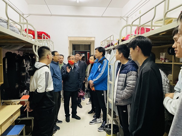 10月10日晚,学院领导班子一行集体深入宿舍了解学生,解疑惑,话家常,送上关心和慰问。返校的同学纷纷表达了开学的喜悦心情,同时也对疫情中的学习和生活表示了压力。党委书记贾磊叮嘱学子珍惜新起点,积极调整心态,克服困难,尽快适应和投入到正常的学习生活中;同时,疫情防控不可松懈,严格遵守规定,按时上报体温等,为营造健康校园贡献力量。