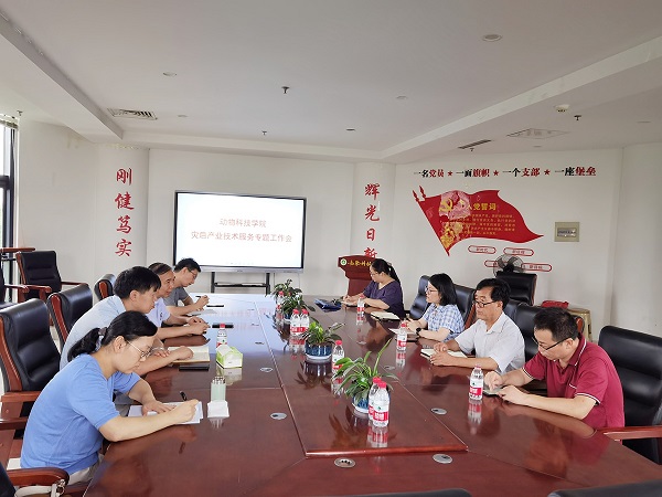 在第一实验楼北330会议室召开灾后产业技术服务专题工作会,学院领导班子和各产业体系专家教授参加会议。