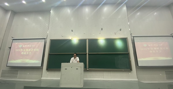 在龙子湖校区大教室七举办2021年暑期“三下乡”社会实践动员大会。团委书记韩笑、团委副书记黄璞及全体班委参加会议。会议由黄璞主持。
