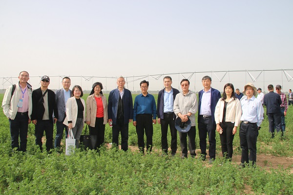 与会人员到黄河滩区苜蓿种植基地现场考察