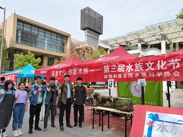 水族科学协会于龙子湖校区一餐广场举办了以“乐趣文化,创意水族”为主题的第三届水族文化节活动。院党委书记贾磊、党委副书记郭娟、团委书记韩笑和协会指导教师孙向丽等莅临指导。