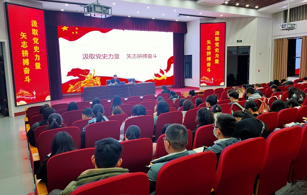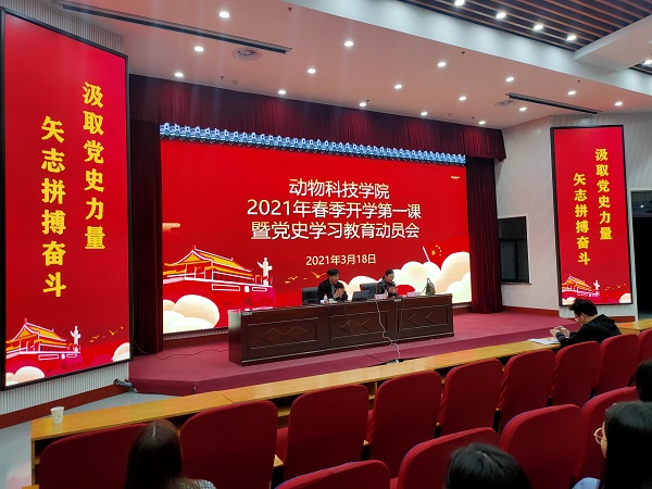 在龙子湖校区大教室一举行春季开学第一课暨党史学习教育动员大会,院党委书记贾磊做题为《汲取党史力量 矢志拼搏奋斗》的专题辅导报告。会议由院党委副书记郭娟主持,吃瓜网站