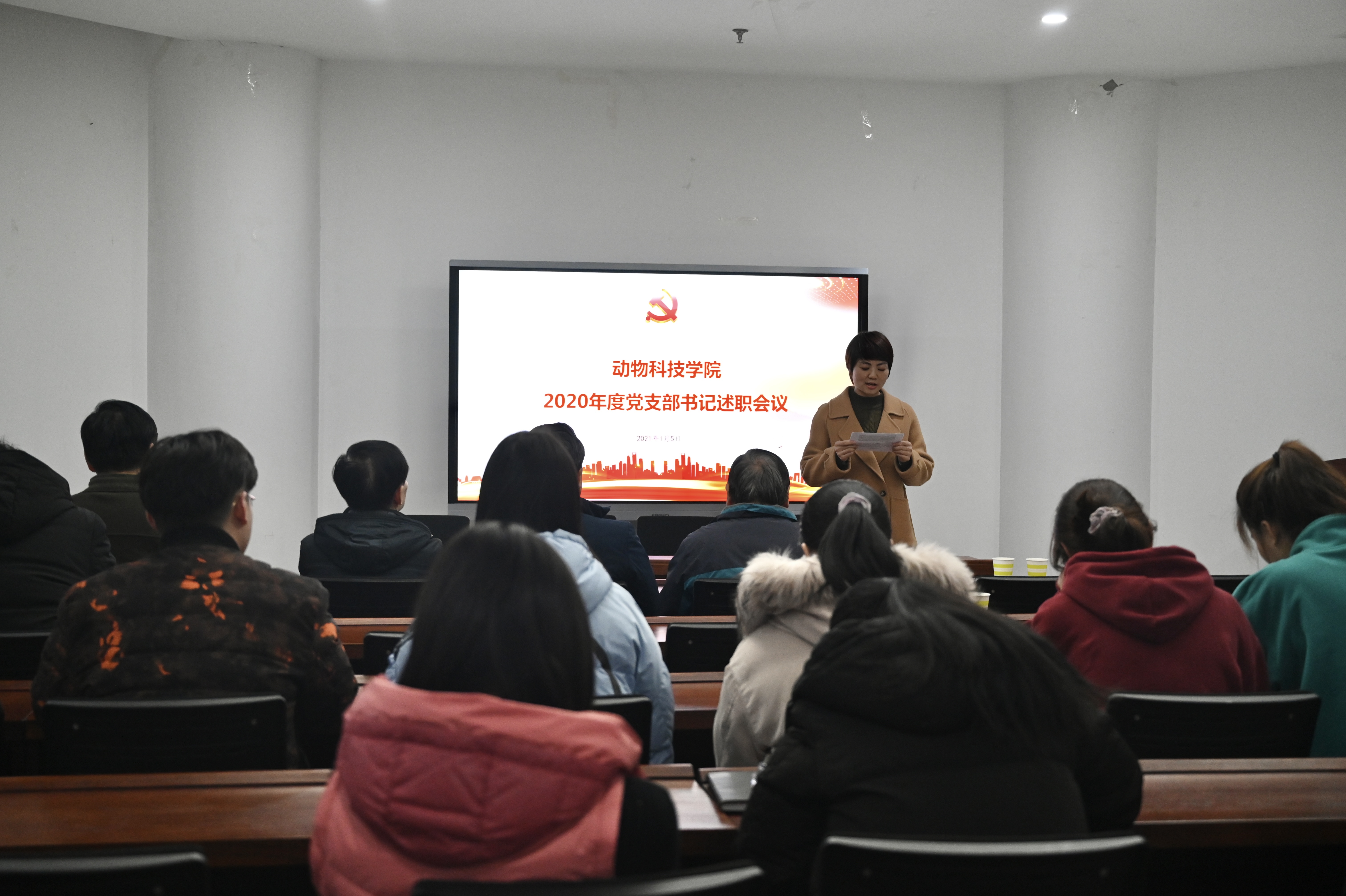会议现场,动物营养与饲料科学系教工党支部等5个教职工党支部书记围绕履行党支部党建责任情况、党支部建设情况、基层党支部战斗堡垒作用发挥情况、存在问题及下一步工作打算等方面一一上台进行述职。大家既总结了2020年度的支部工作亮点和成绩,查摆了工作中存在的问题,剖析了问题产生的根源,也列出了2021年党建工作计划,考核会既是述职评议,也是工作交流。