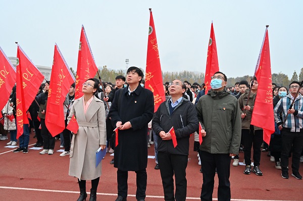 于龙子湖校区北操场举行了“爱国明志 勤学自强”主题升旗仪式,学院领导班子和师生代表600余人参加,仪式由党委副书记郭娟主持。
