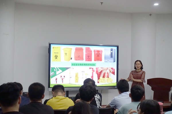 在第一实验楼北530举行了研究生实验室生物安全及个人防护主题报告会,院长李明主持,教授菅复春担任主讲,2020级全体研究生参会。