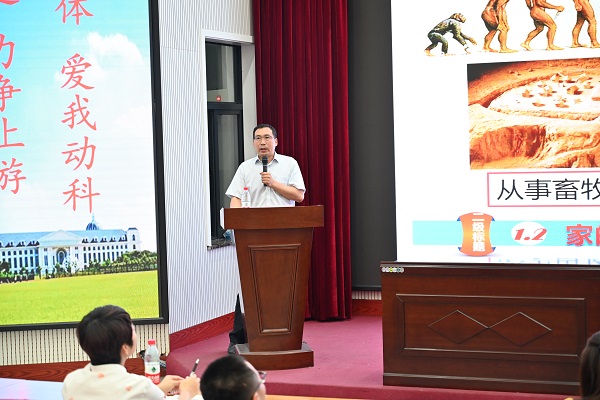 活动初始,田亚东以“畜”“牧”象形文字引入,介绍了大畜牧产业的悠久历史和发展沿革,结合大数据展示了本产业对社会发展和日常生活质量的提升所作出的突出贡献。同时,以图片和视频辅助展示了现代化畜牧养殖情况,进一步指出当前国家政策利好下,畜牧业快速转型,正是畜牧相关专业学子大展身手的大好时机。田教授寄语新生,树立充分的专业自信,努力学好基础知识,大学四年锻造发展“金名片”。