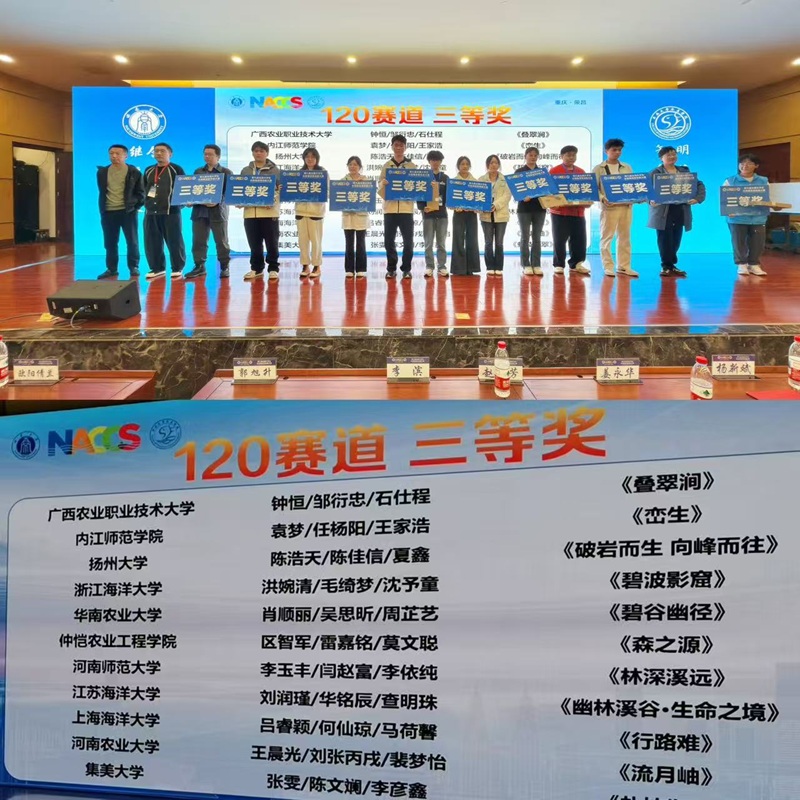 本网讯(通讯员 孙向丽 董鹏生)10月31日至11月2日,由教育部高等学校国家级实验教学示范中心联席会、教育部高等学校水产类教学指导委员会、全国新农科水产联盟主办,西南大学承办的第九届全国大学生水族箱造景技能大赛总决赛汇报在重庆荣昌举行。本赛事以“自然·共生”为主题,分校赛和全国总决赛两个环节,共吸引全国37所高校参与。其中,决赛环节于9月27日正式开赛,决赛过程分为造景阶段和答辩汇报阶段两个赛段,共持续一个月时间。由吃瓜网站