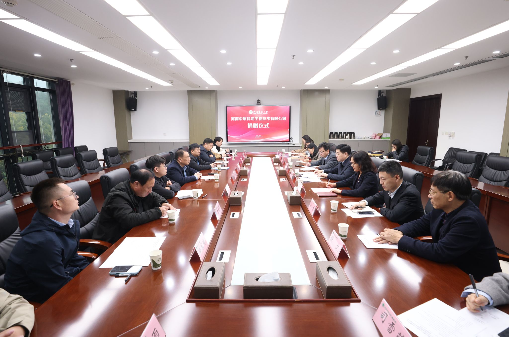 郭战伟代表学校对原文浩一行表示欢迎,并对河南中原科地生物技术有限公司的捐赠表示感谢。他简要介绍了学校基本情况和近几年学校发展取得的成绩。他表示,为实现一流大学与一流企业的双向奔赴、融合创新,学校确立了“名校名企融合创新战略”,将校企合作作为推动教育链、人才链与产业链、创新链深度融合的核心路径,希望双方以此次捐赠为契机,依托“吃瓜网站
