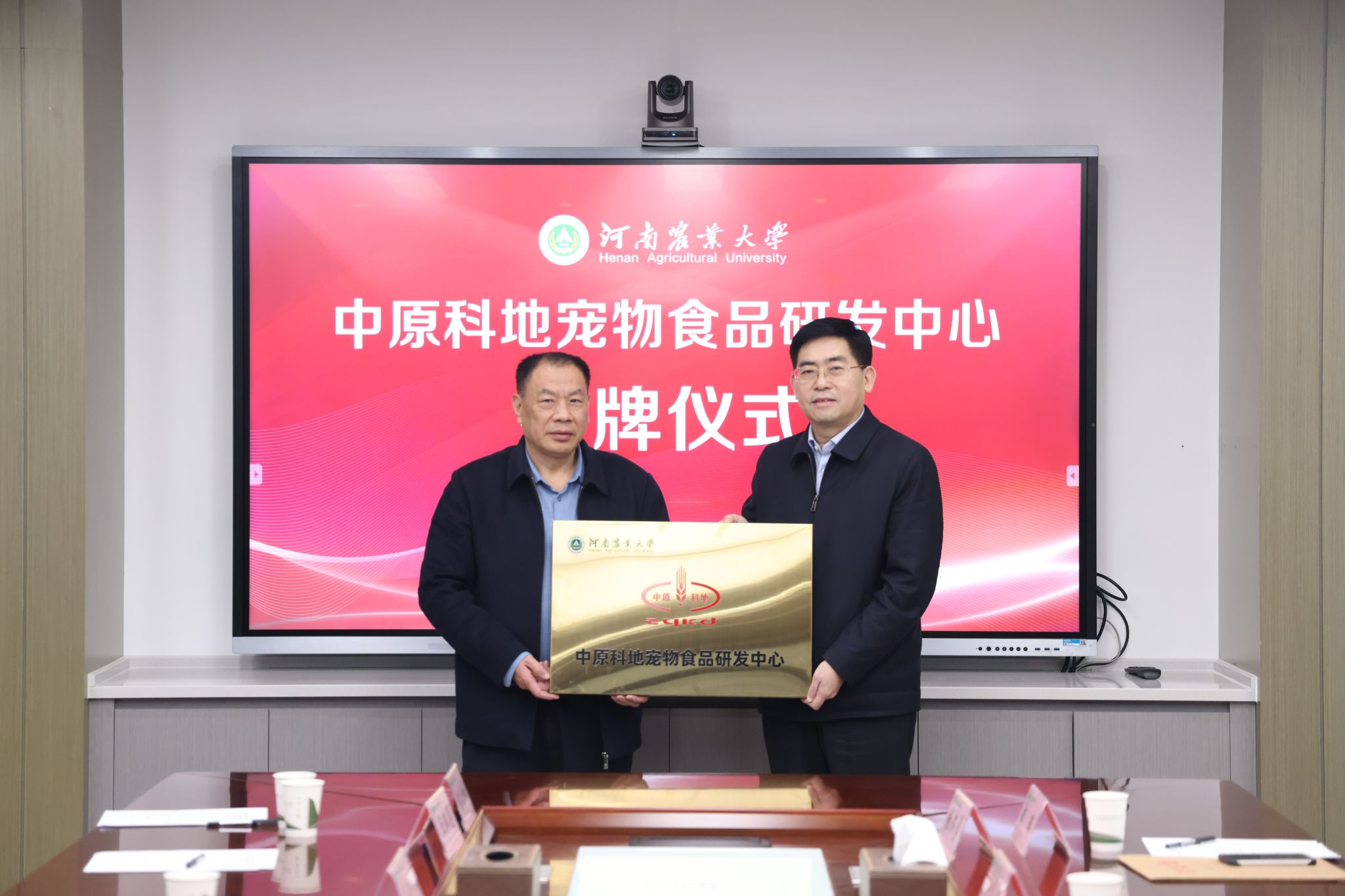 中原科地宠物食品研发中心”授牌仪式在龙子湖校区举行。河南中原科地生物技术有限公司董事长原文浩、总经理张志良,吃瓜网站