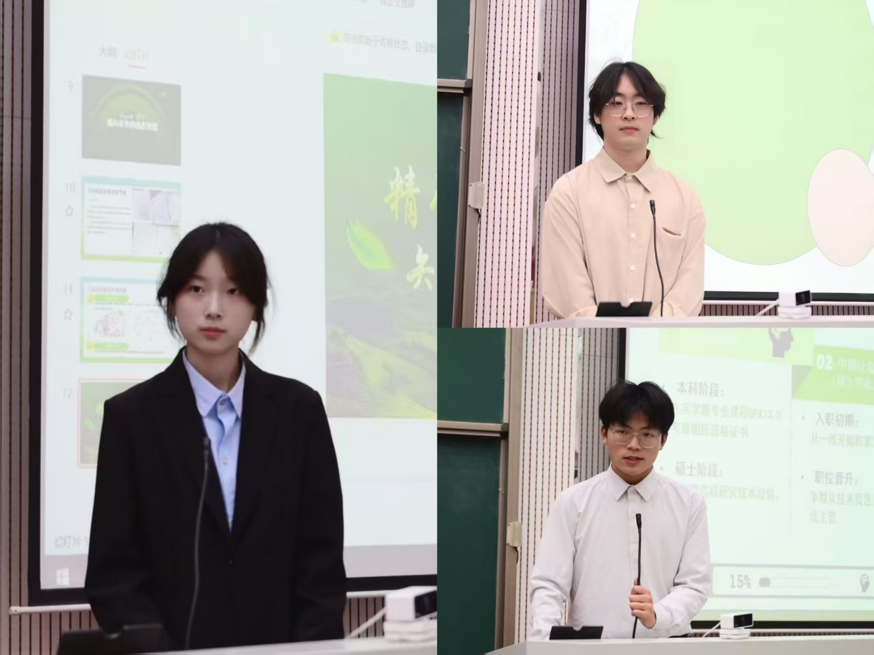 历经多轮筛选,15名优秀选手成功晋级决赛。决赛现场,选手们结合个人实际,通过PPT展示与现场答辩,从自我认知、职业环境分析、职业路径规划、评估调整等多个维度,全面呈现了各自清晰的职业规划蓝图。随后,评委团对每位选手的表现进行了细致点评:既充分肯定了大家的亮点与优势,也针对展示和答辩中的不足,给出了切实可行的改进建议。