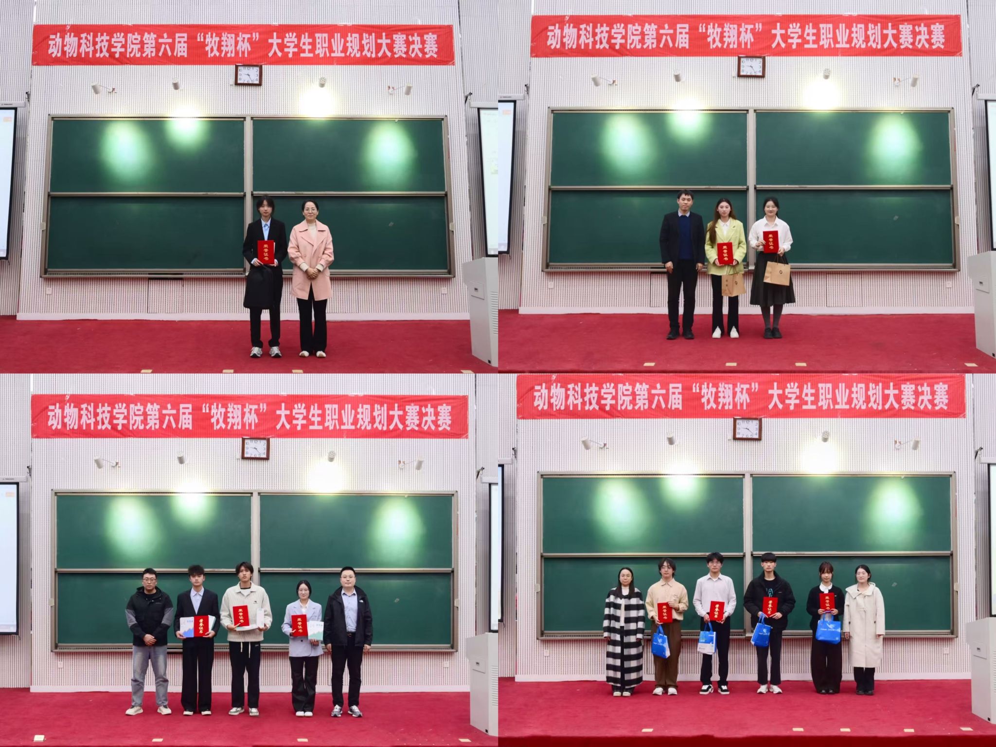 经过激烈角逐,24级动科一班刘培佩荣获一等奖;24级动科五班尹静怡、24级动科一班孙荣慧荣获二等奖;24级动科六班史鸿飞、24级动科一班吴帅航、24级动科二班栗佩琪荣获三等奖;24级动科六班张航斌、24级饲工二班陈家乐、24级动科五班杨梓哲、24级动科六班田蕾获得优秀奖。评委老师为以上获奖人员颁发获奖证书并进行合影留念。