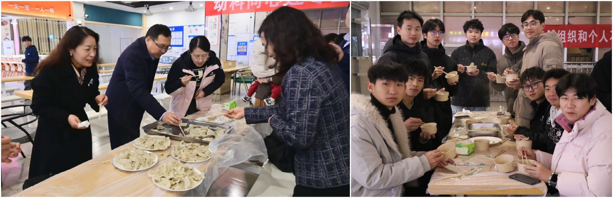 随着饺子陆续下锅,活动现场香气四溢。师生共同品尝亲手制作的热气腾腾的饺子,分享劳动的喜悦与冬至的温暖。同学们纷纷表示:“在学院感受到了家的温暖与味道。”“和大家一起过节,感觉特别有意义!”欢声笑语中,情谊流转,暖意满怀。