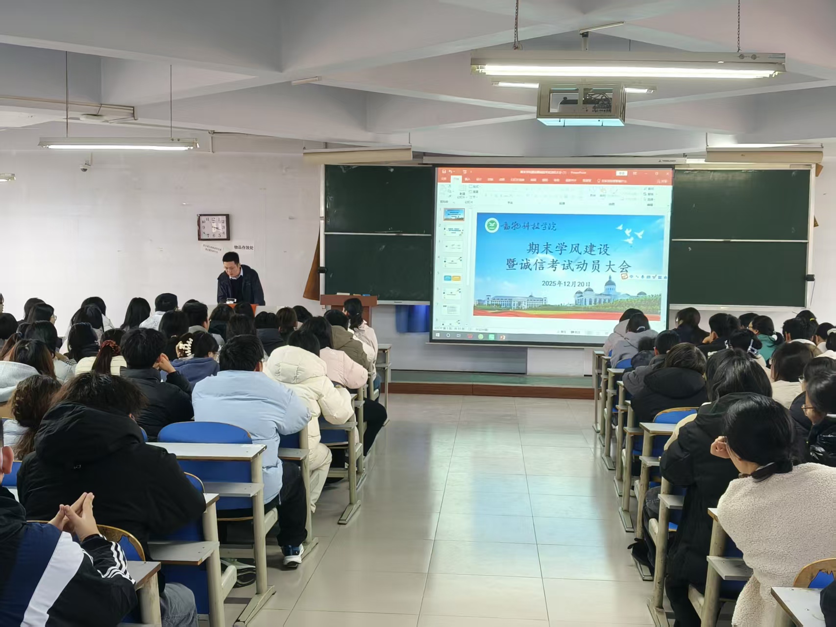 韦倩倩将学习方法与学术品德紧密结合,在传授针对性学习技巧之余,着重阐述了学术诚信的根本价值,向全体同学发出树立诚信观念、自觉遵守考试纪律、共同捍卫公平考风的坚定倡议。