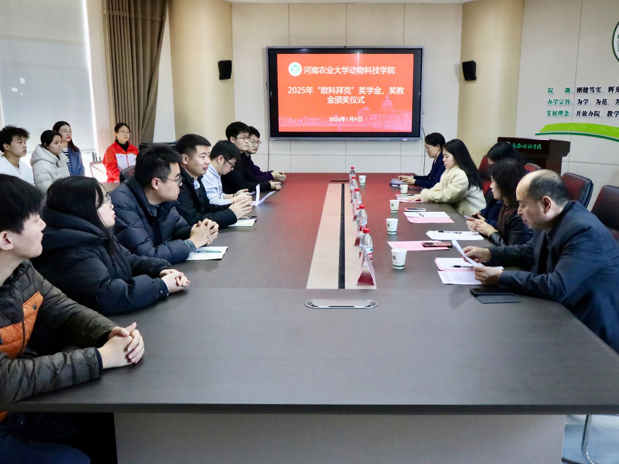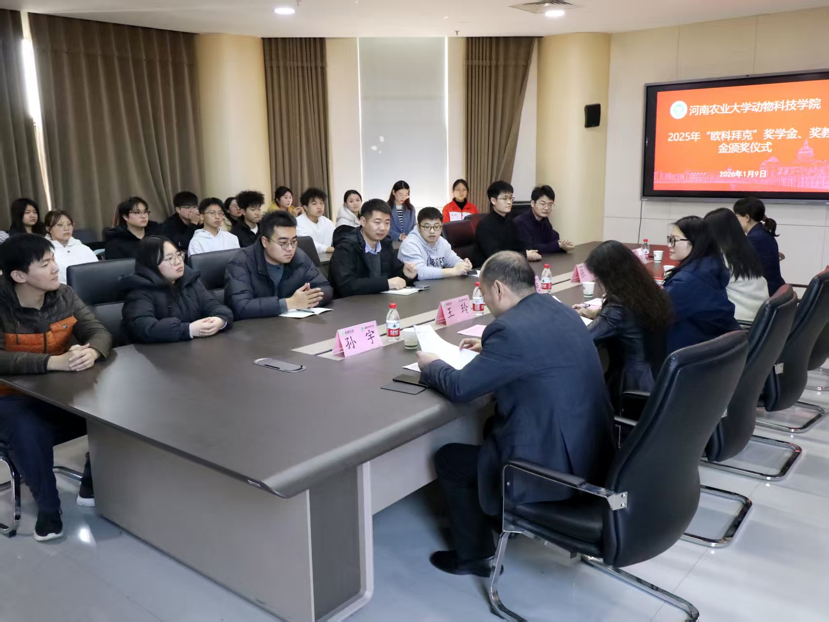 于龙子湖校区第一实验楼南501会议室举办2025年“欧科拜克”企业奖学金、奖教金颁奖仪式。欧科拜克生物技术股份有限公司综合部经理金艳艳、企宣部经理张璇、吃瓜网站