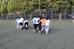 本次活动共分为单人项目:五毛和一块、勇敢向前冲;团体项目:齐心协力跑、搭桥过河。比赛现场气氛热烈,参赛研究生均饱含激情、积极参与游戏,场外观众也为参赛选手摇旗呐喊,掌声、喝彩声在足球场上此起彼伏。经过激烈角逐,杜文苹、豆雅晴获得单人项目一等奖;付帅旗组、郭朝辉组获得团体赛一等奖。