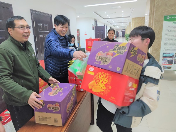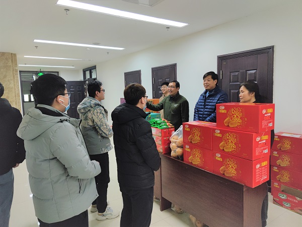 党委书记贾磊、副院长田亚东,副院长酒梅菊在第一实验楼四楼大厅为留校的22个学生发放了慰问品,让学生充分感受到学院的温暖和关怀。