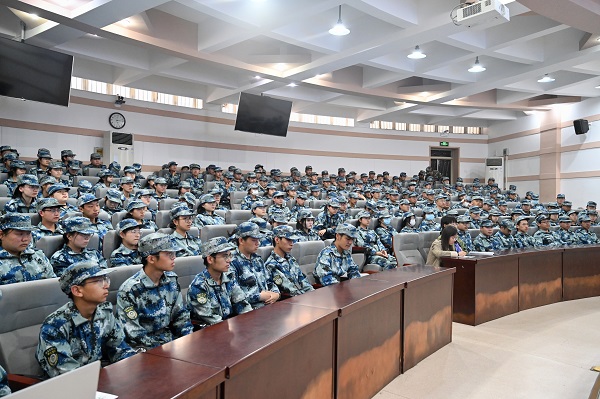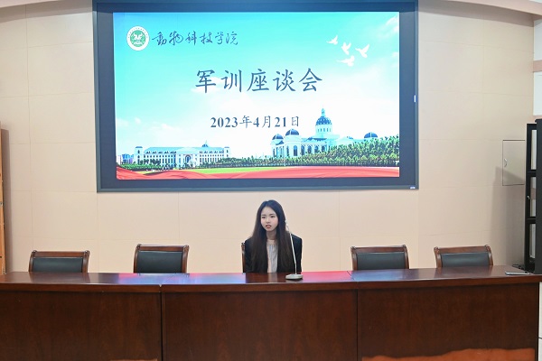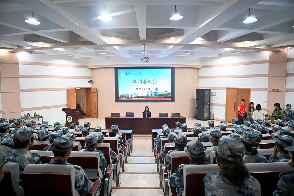 学生的荣誉感与自豪感,更加坚定了对学院的热爱。军训教官代表樊靖与马宇龙从自身的护旗手工作以及军旅生活向大家介绍对学校以及学院的热爱,增强了22级学生爱党爱国情怀,各排学生代表依次分享自身军训心得,觉得从军训中收获颇丰。
