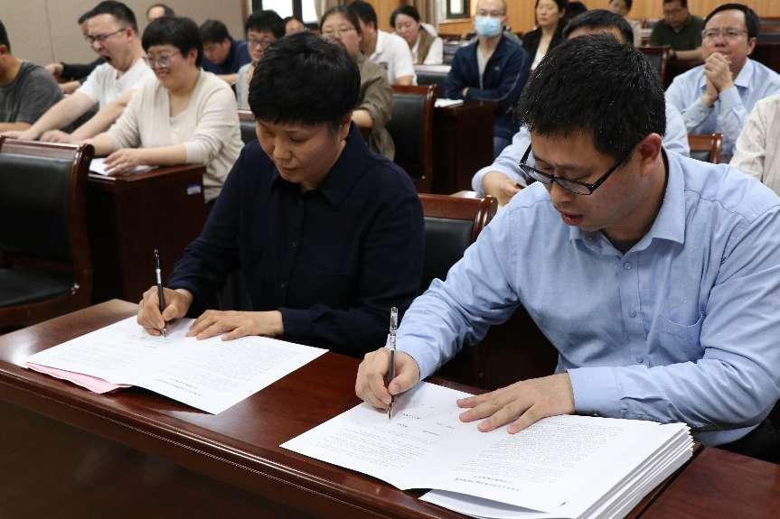 本网讯(通讯员 党丹岐)为加强实验室安全工作,全面落实实验室安全责任,确保实验室安全有序运行,4月19日下午,吃瓜网站 于龙子湖校区第一实验楼南321会议室举行实验室安全管理目标责任书签订仪式。院党委书记贾磊、院长李明、副院长酒梅菊、付彤、孙宇及全体教职员工参与会议。