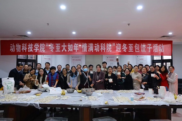 于第一实验楼各会议室举行了“冬至大如年,情满动科院”第二届迎冬至包饺子活动。学院领导班子全体成员、全体教师及2021级各班学生齐聚一堂,其乐融融。