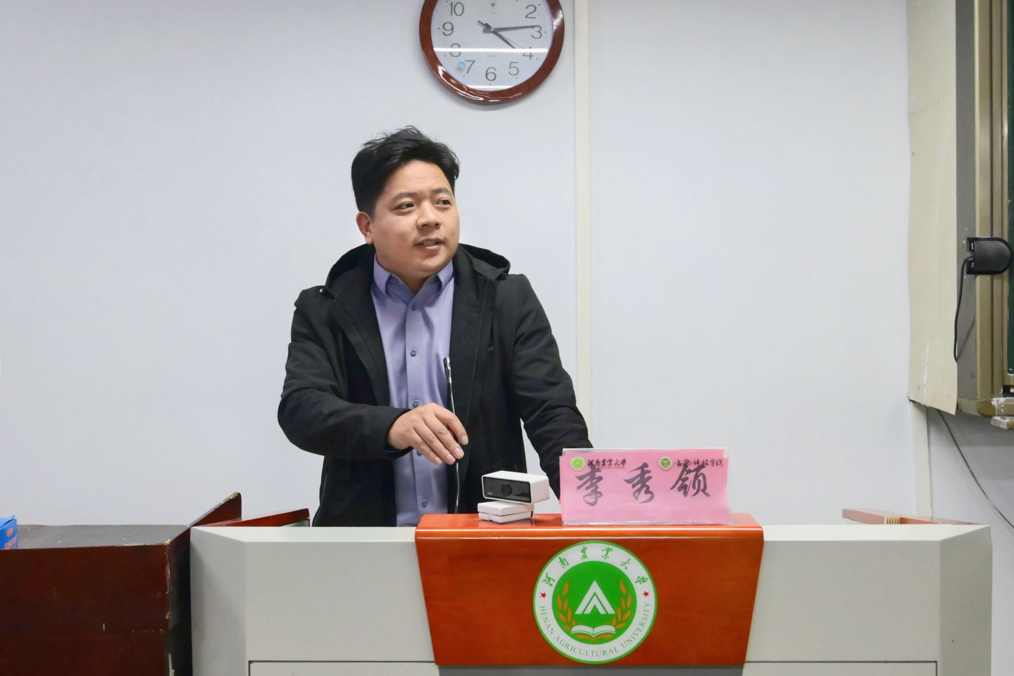 于桃李园学生公寓桃西楼204教室举办2025级动物生产类新生专业思想教育讲座。会议特邀海南省地方鸡产业技术体系首席科学家魏立民、水产与经济动物养殖系青年教师董鹏生主讲,2025级动物生产类专业全体本科生参加活动。活动由吃瓜网站
