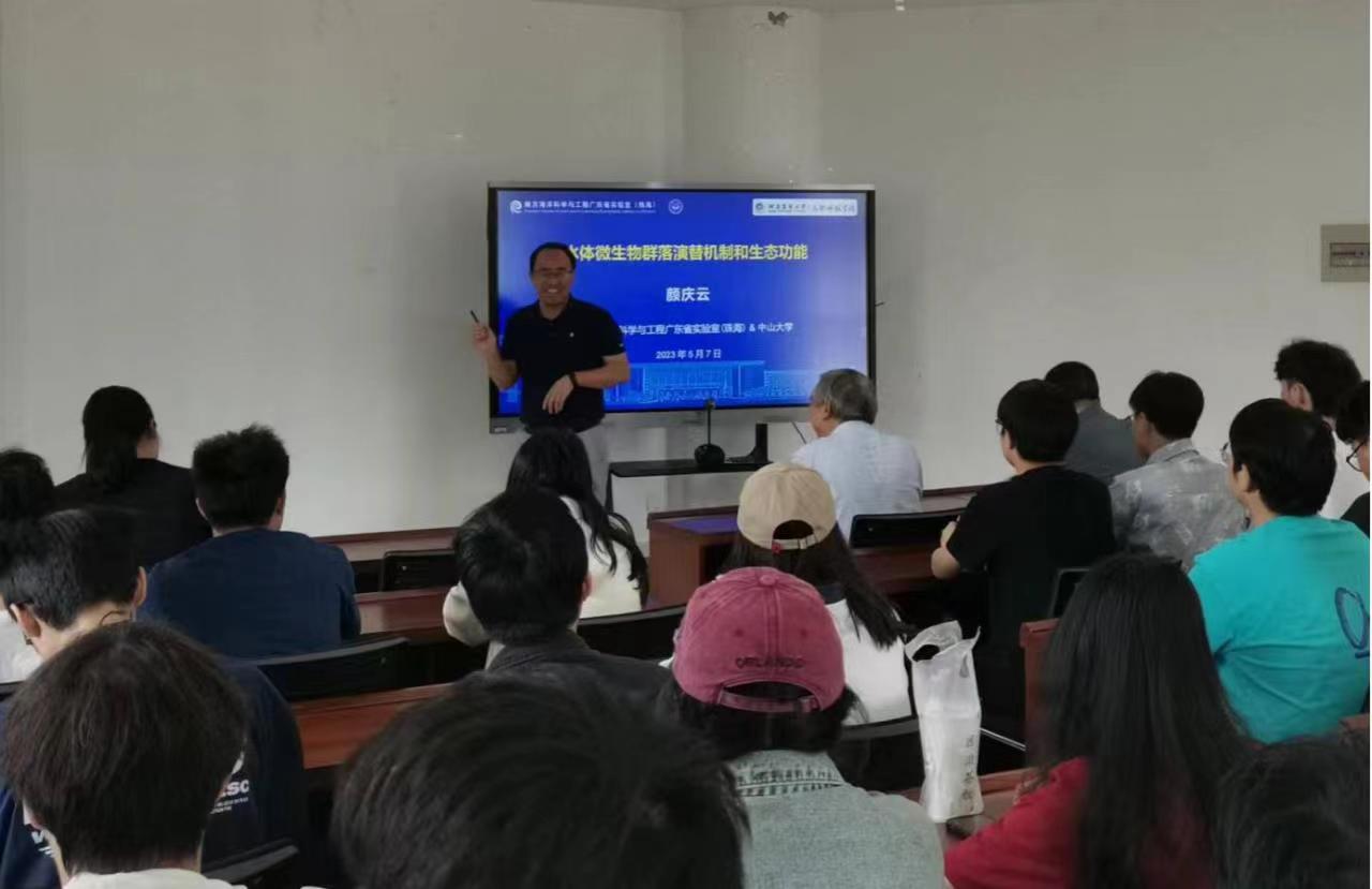 颜庆云教授以《水体微生物群落演替机制和生态功能》为题,通过“鱼类肠道微生物与宿主互作及其生态功能”和“微生物驱动水圈氮循环”两个核心主题,详细介绍了肠道微生物群落生态演替机制与功能、湖泊氮循环微生物生态位分化、反硝化与厌氧氨氧化耦合以及湖泊厌氧氨氧化菌反应器富集等内容。在互动环节,颜庆云教授详细解答了师生的提问。