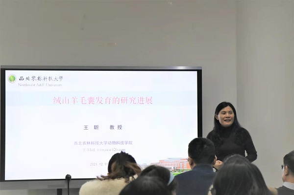 王昕教授以《绒山羊毛囊发育的研究进展》为题,通过简单介绍陕北白绒山羊,深入讲解了绒山羊毛囊发生发育中lncRNA的筛选与鉴定、绒山羊毛囊发生过程单细胞转录图谱的构建、褪黑素影响绒山羊HFSCs增殖与分化、绒山羊毛囊发生发育关键信号通路和基因的筛选和鉴定、Hoxc13对毛发角蛋白的调控及其自身的调控机制、DNA甲基化对绒山羊毛囊分化的调控六项研究结果,为吃瓜网站